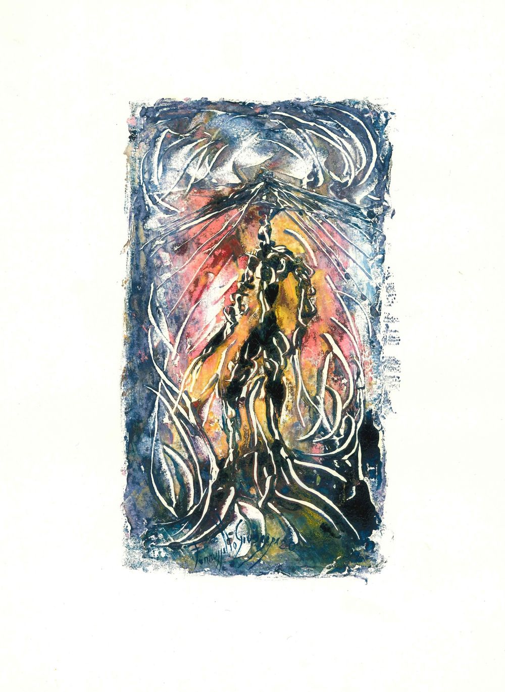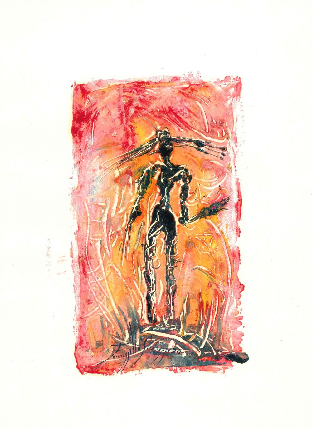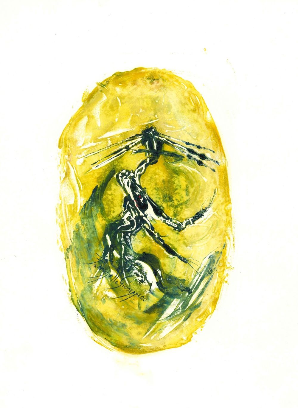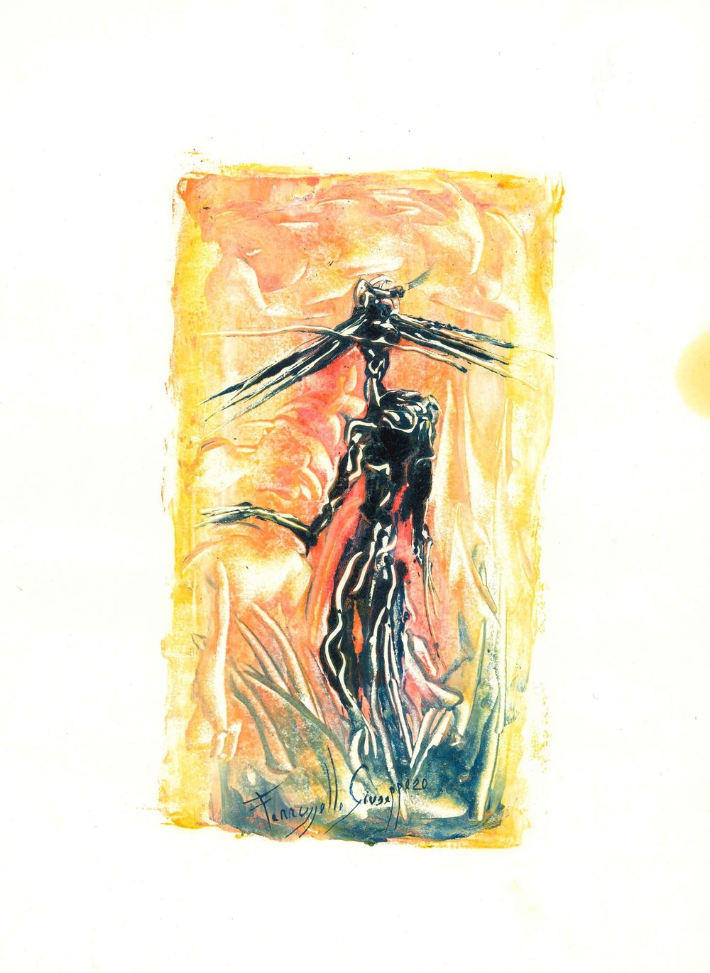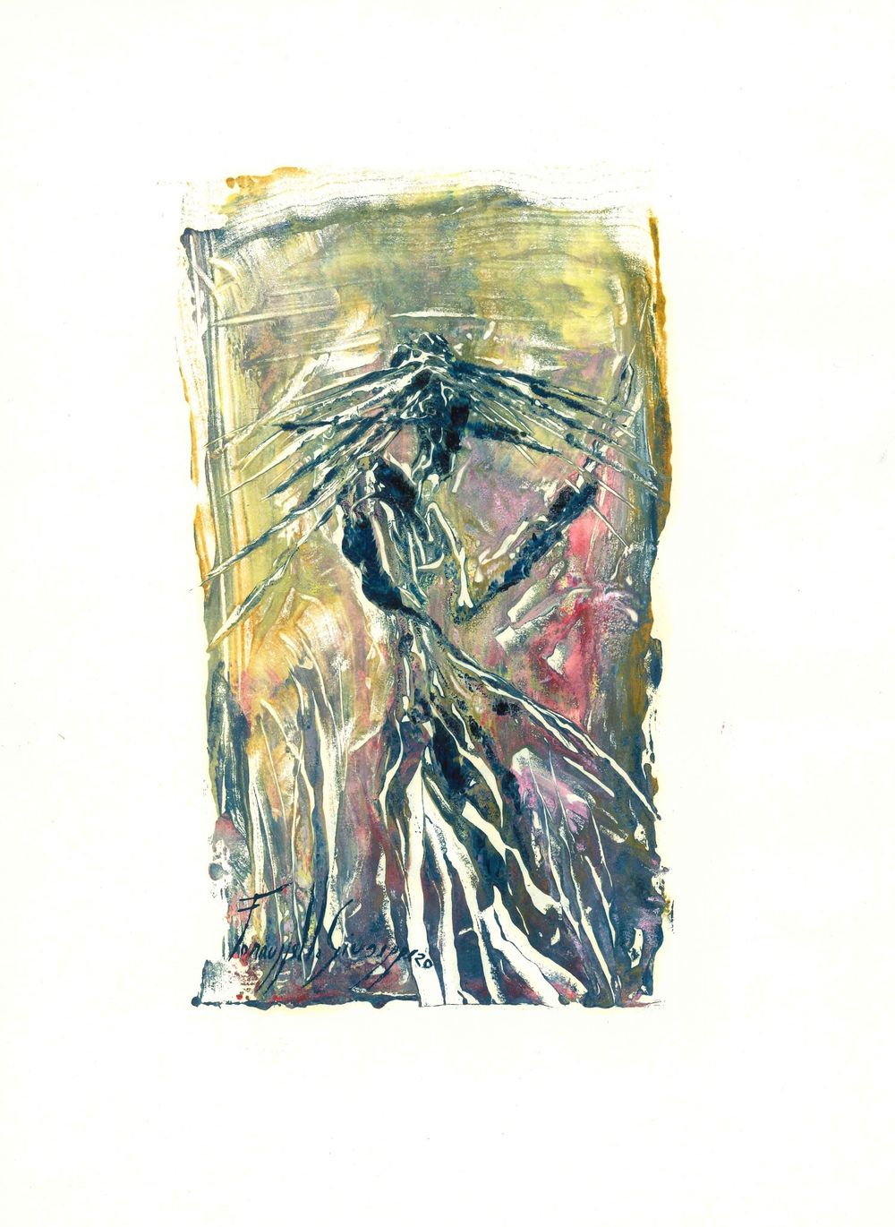 Una raccolta di 20 lavori divisi in: 10 con una forma ovale e 10 con una forma rettangolare ,eseguita in monotipo ad olio su carta comune cm 27,5x36, realizzati durante il periodo del primo lockdown. Successivamente questi lavori sono stati messi a disposizione per un'asta benefica svoltasi dal 24 Aprile al 15 Maggio 2020 sul profilo Facebook Giuseppe Farruggello.